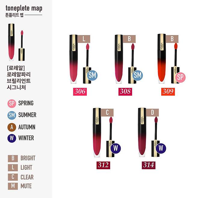 브릴리언트 시그니처는 핑크와 레드 컬러들로 구성이 되어 있어요. 사실 글로시 텍스처는 톤다운된 컬러나 뮤트톤 보다는 브라이트나 클리어(비비드)가 잘 어울려요~ 아쉽게도 이번 컬렉션은 가을 웜톤의 컬러가 없네요. F/W에 나올 new 컬러들은 가을 웜톤 컬러들이 많지 않을까요?