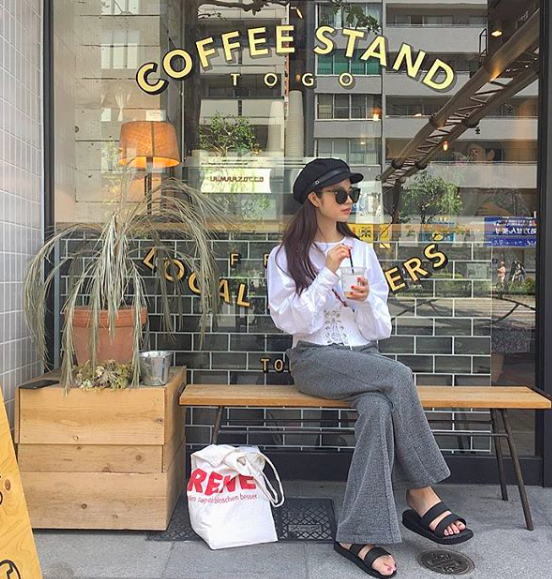 플랫슈즈, 샌들, 스니커즈, 슬리퍼로 멋을 내는 편이네요.
