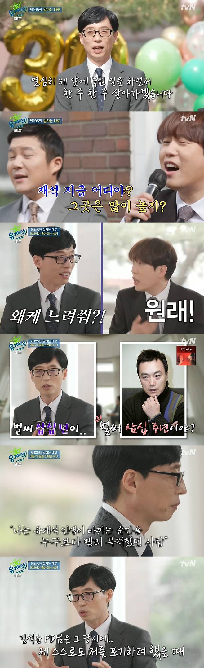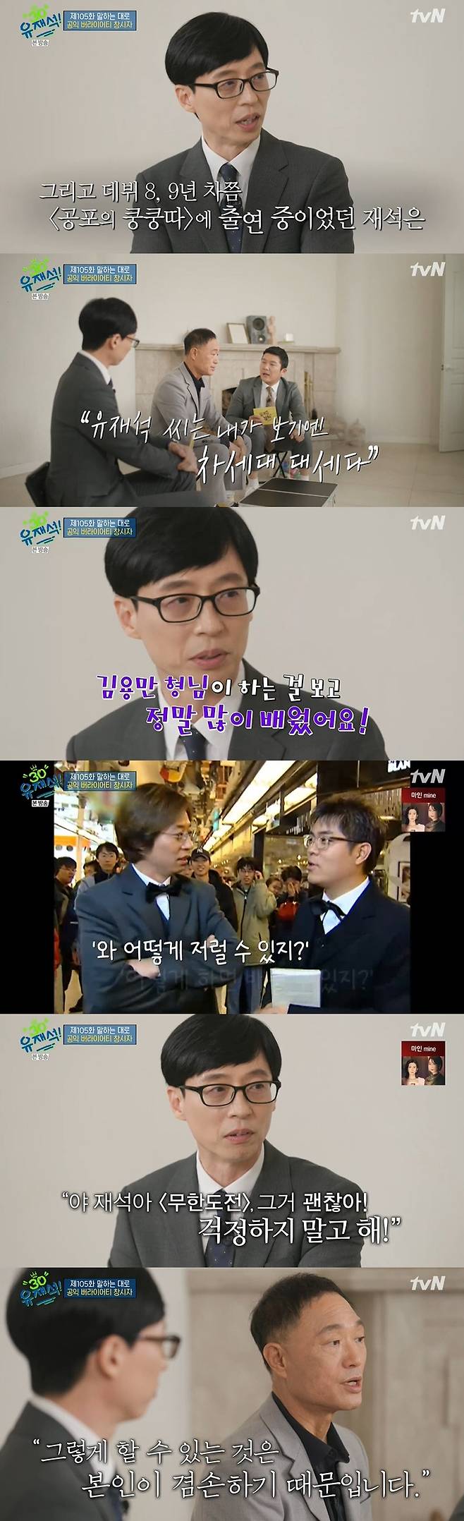 한편 이날 방송에서는 유재석을 버라이어티로 끌어준 김석윤 감독과의 전화 인터뷰도 진행됐다. 1993년에 유재석과 처음 만났다는 김석윤 감독은 "첫인상은 그냥 평범하고 까불까불했다. 방송 들어가면 잘 못 했다. 방송 밖에서는 그래도 괜찮았다"고 회상했다.