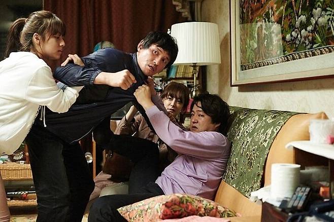 태일의 형 영일(곽도원)이 동생과 싸운 후 아내 미영(김혜은)으로부터 소독약으로 상처부위를 치료받는 장면.