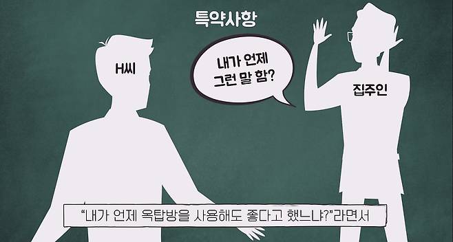 H씨는 정말 황당했죠. 그때 계약서 특약사항이 번뜩 떠올랐습니다. 그제야 집주인은 옥탑방 열쇠를 내주었어요. 만약 H씨가 이런 내용을 특약사항에 적어놓지 않았다면 과연 옥탑방을 쓸 수 있었을까요?