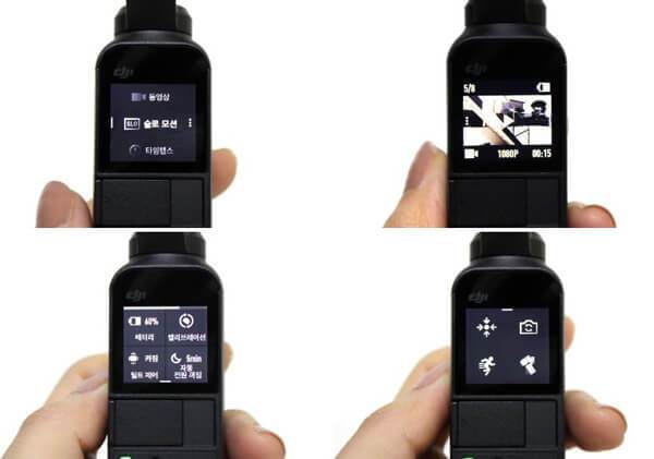 짐벌 치고는 지나치게 심플한 외관도 눈에 띈다. 상단 카메라는 3축 짐벌이 안정적으로 감싸고 있고, 그 아래 먼저 보이는 것이라고는 단 두 개의 버튼뿐이다. 그 위로 엄지 발톱만한 아주 작은 소형 디스플레이가 달렸고, 그 바로 아래에는 스마트폰 어댑터를 연결할 수 있는 마운트가 있다. 약간 돌출된 부분을 잡아당기면 어댑터 연결부가 나온다. 왼쪽 측면에는 마이크로 SD 카드 삽입부가 있으며, 바닥면에는 USB-C 타입 충전 포트가 마련돼있다.