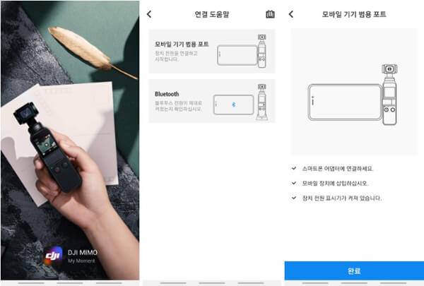블루투스 없이 연결 어댑터만 있으면 이렇게 스마트폰과 오즈모 포켓이 하나가 된 듯 조작할 수 있지만, 블루투스 연결 또한 지원한다. 이를 위해서는 무선 모듈 액세서리가 추가로 필요하며, DJI Mimo 초기 연결 설정 시에 어댑터가 아닌 블루투스 연결을 선택하면 이용 가능하다.