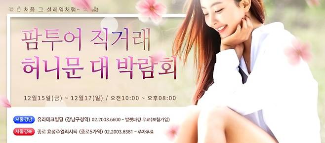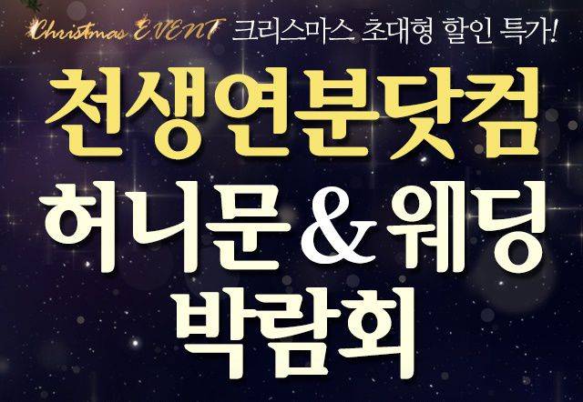 허니문 박람회의 대표주자! 천생연분닷컴의 허니문&웨딩박람회는 12월 23일부터 크리스마스인 25일까지 3일간 열린답니다. 허니문의 대표주자인만큼 신혼여행때문에 고민이신 분들은 꼭 한 번씩은 가보셔야겠죠?^^