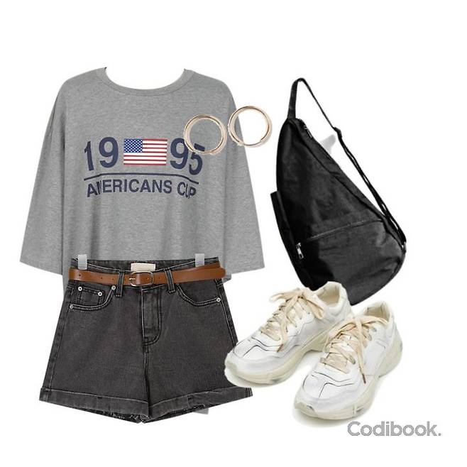 루즈한 회색 티셔츠가 없다면 오버핏의 어떤 티셔츠와도 잘 어울린답니다. 운동화가 부담스럽다면 쪼리도 잘 어울려요.