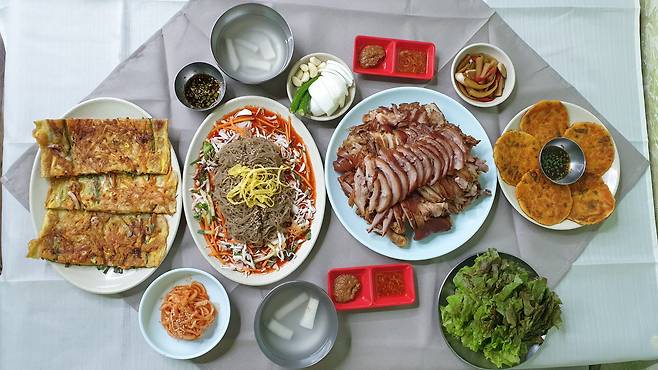 대표 메뉴 ‘족발’은 개업 초기부터 사용해 오고 있는 씨 간장 육수를 이용하여 3대째 한결같은 맛을 지켜오고 있다. 탱글탱글한 껍데기와 야들야들하게 녹아내리는 살코기의 대조적인 식감이 풍성한 식감을 살려준다. 혼밥족도 족발과 막국수를 부담 없는 가격으로 즐길 수 있는 세트 메뉴도 준비되어 있다.