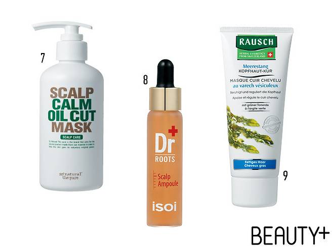 7 쏘내추럴 스칼프 캄 오일 컷 마스크 쉽게 기름지고 떡지는 문제성 두피를 위한 머드 마스크로, 샴푸 전 두피의 각질과 노폐물, 피지를 말끔히 거둬낸다. 250ml 2만원. 8 아이소이 닥터 루츠 스칼프 앰플 인삼, 강황, 박하잎 성분이 모근을 탄탄하게 가꾸고, 두피에 활력을 선사한다. 스트레스 받은 두피를 진정시키고, 과다 피지를 조절해준다. 9ml×6ea 6만8000원. 9 라우쉬 씨위드 스칼프 팩 두피의 과도한 각질과 피지를 케어하는 스케일링 팩. 기분 나쁜 정수리 냄새를 확 잡아준다. 100ml 3만5000원.