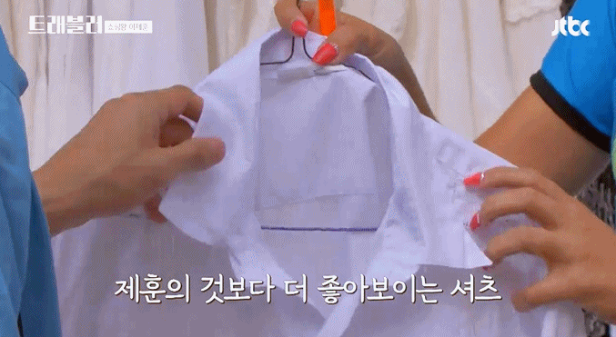 자신의 쇼핑템들을 하나씩 꺼내 보이며