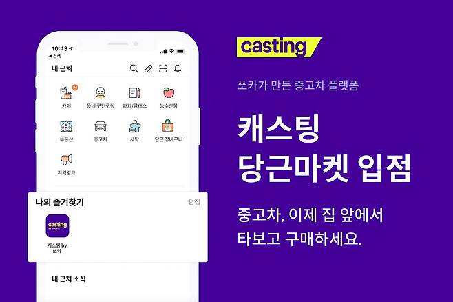 쏘카는 온라인 중고차 플랫폼 캐스팅이 당근마켓에 입점한다고 20일 밝혔다.