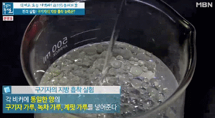 각 비커에 동일한 양의 물 위에 기름을 띄운 후