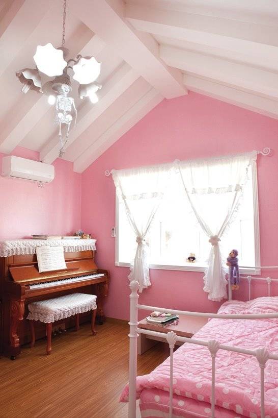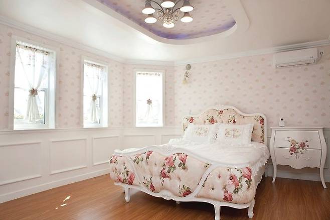 화사한 안방과 아기자기하게 꾸민 예쁜 작은 방이다. 안방은 장미 그림이 그려진 고풍스러운 침대와 연분홍의 장미 벽지를 매치했다. 각을 이루는 벽면은 입면마다 창을 내 빛이 고르게 퍼져 방을 밝혀주는 구조다. 안방을 가만히 주시하면 마치 그림을 보는듯하다. 딸 방은 유학생활로 고단함이 쌓일지라도 한순간에 사그라지게 할 것처럼 따뜻하고 포근함을 담았다.