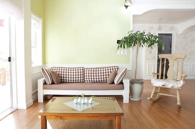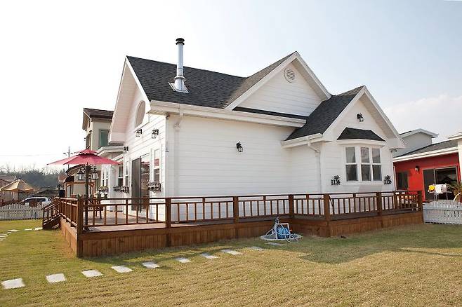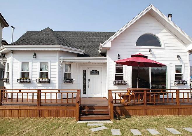 예쁜 화분 진열대를 장식해 다소 밋밋해 보일 수 있는 외관을 장식했다. ‘언덕 위의 하얀 집’을 상상하며 전원생활을 꿈꿔온 이들이라면 바로 이런 집이 아닐까?