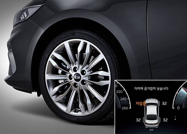 TPMS (타이어 공기압 측정장치, Tire Pressure Monitoring System)가 없더라도 주유소나 고속도로 휴게소에 설치된 타이어 공기압 주입기를 이용할 수 있고, 월 1회 이상 꼭 점검하세요. 마모한계 1.6㎜ 이하이거나 균열된 타이어는 사용하지 않는 것이 안전하답니다.