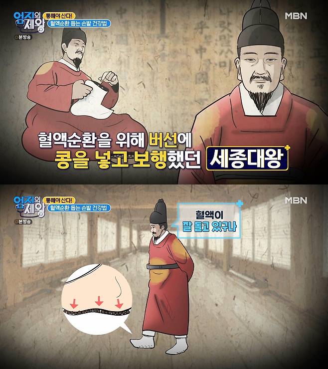 버선에 콩을 넣고 걸어다녔다고 하는데요.