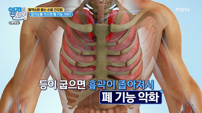등이 굽으면 흉곽이 좁아져 폐 기능이 악화됩니다.