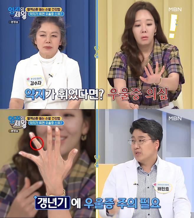 약지가 휘었다면 우울증을 의심해볼 수 있습니다.