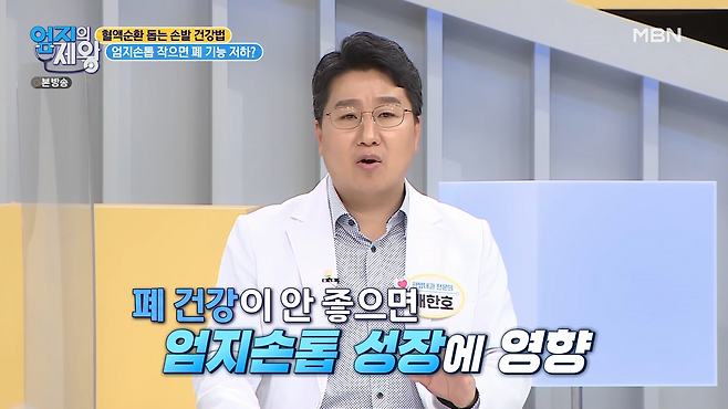 제일 먼저 엄지손톱 성장에 영향을 주는데요.