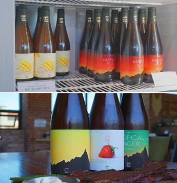 몽트비어 만의 이색적인 특징은 총 두 가지다. 첫째는 모든 맥주가 이곳에서 만들어진다는 것이다. 그래서 다른 지역 업체들로부터 러브콜을 받아도 대량생산이 불가능하다. 그리고 둘째는 지역특산품을 이용한 수제맥주를 판매하고 있다는 것. 봄에는 응골 딸기마을에서 나는 딸기를 사용해 스트로베리에일을 만든다. 가을에는 상주에서 나는 샤인 머스캣을 이용한 포도맥주, 양양 곰 마을에서 나는 복숭아를 이용한 복숭아 맥주를 만든다.