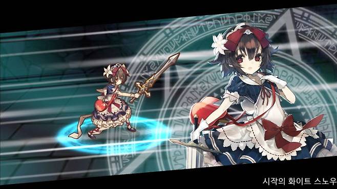 게임 전체를 아우르는 '동화'라는 컨셉은 그림노츠를 조금 더 특별하게 만들어 줍니다. 앨리스, 백설공주, 신데렐라 등 어린 시절부터 익히 들어 왔던 동화 속 주인공들이 등장하죠. 가녀린 10대 공주 백설이 검을 휘두르는 장면은 처음에는 솔직히 좀 충격일 수도 있지만 나중에는 그렇게 이쁠 수가 없어요.