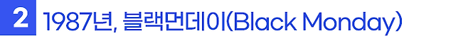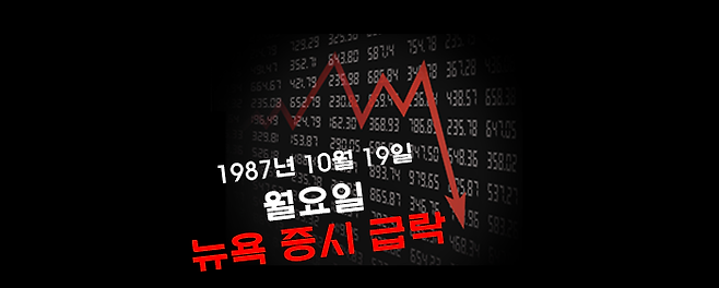 바로 블랙먼데이입니다. 1987년 10월 19일 뉴욕 증시가 개장 초부터 대량의 팔자 주문이 쏟아지면서 다우존스 지수(DJIA)가 당일 508포인트(22.6%) 급락하였는데, 그날이 월요일이어서 블랙먼데이(Black Monday)라는 이름이 붙어졌습니다.