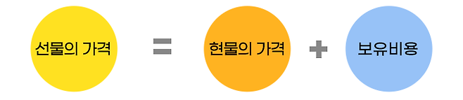 예를 들어 선물의 가격은 현물가격에 보유비용을 더한 것입니다.