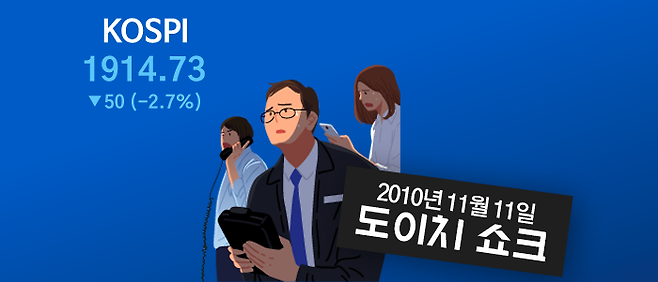 일명 “도이치 쇼크”라고 알려진 사건인데, 2010년 11월 11일로 거슬러 갑니다. 이날은 코스피200선물과 코스피200옵션의 동시 만기일이었는데, 주식시장 장 마감 동시호가에 들어서면서 갑자기 외국인 매도 물량이 2조 원가량 쏟아집니다.