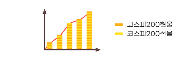 선물과 그 기초자산은 일정한 관계를 유지하면서 동일하게 움직입니다. 여기서 일정한 관계란 수치적인 관계를 말합니다.