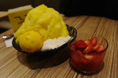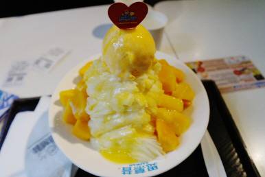3대 망고 빙수 중, 가장 비싼 가격이지만, 한국보다는 싸고 양도 2배!! 탑처럼 층층 쌓여 있는 노오란 얼음과 망고 아이스크림, 푸딩 그리고 딸기(원래는 망고임)가 함께 나온다.