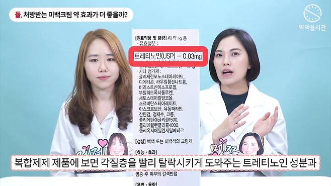 복합제제에는 색소 침착이 있는 각질을 빨리 탈락시키도록 도와주는 트레티노인 성분과 염증반응을 낮춰주는 스테로이드 성분이 함께 들어가 미백효과를 높이는데요.