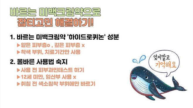 우선, 바르는 의약품의 성분을 보면 ‘하이드로퀴논’이 미백효과를 인정받고 있어요.