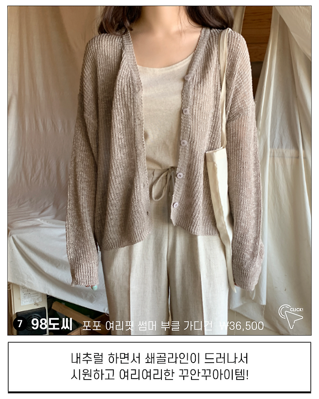 7. 98도씨 포포 여리핏 썸머 부클 가디건 ₩36,500