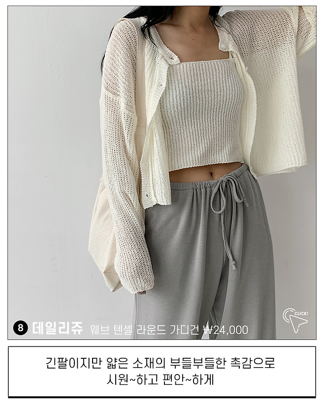 8. 데일리쥬 웨브 텐셀 라운드 가디건 ₩24,000