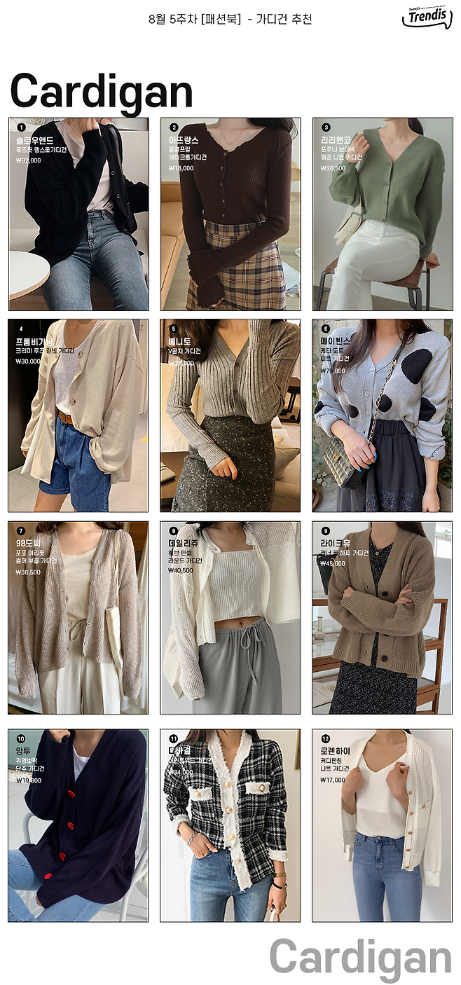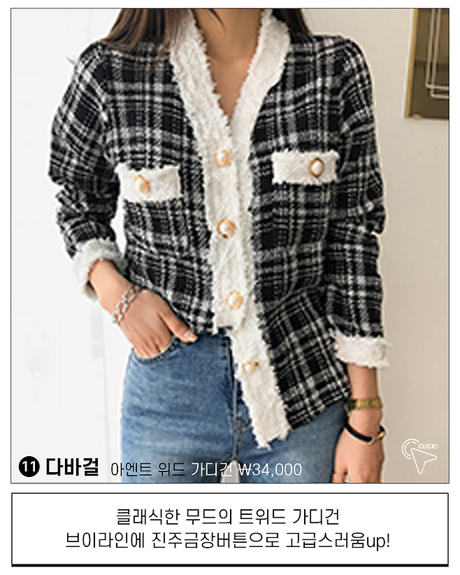 11. 다바걸 아엔트위드가디건 ₩34,000