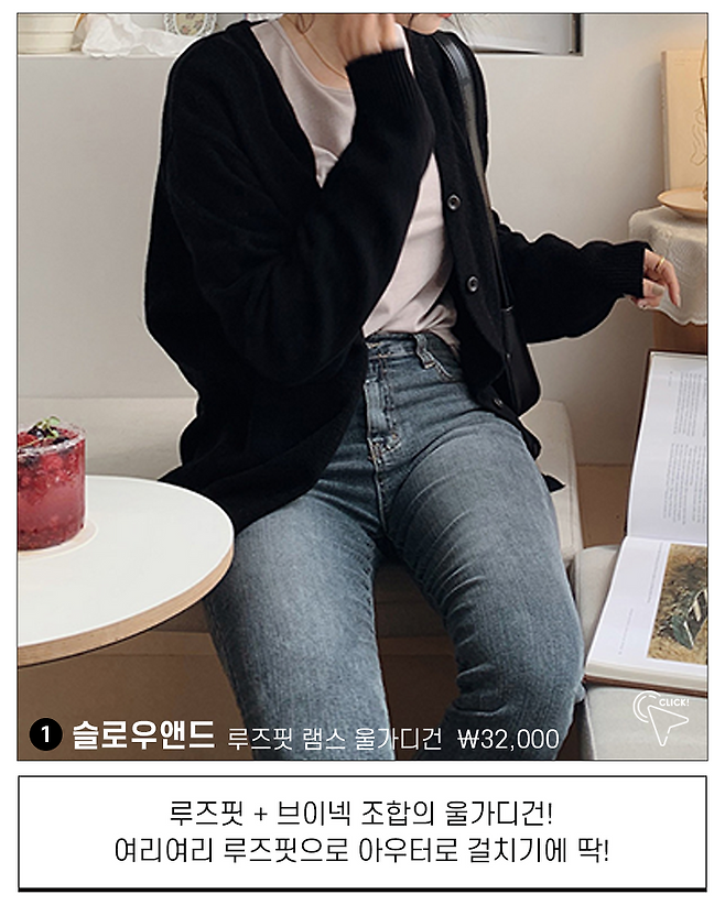 #1. 슬로우앤드 루즈핏 램스울가디건 ₩32,000원