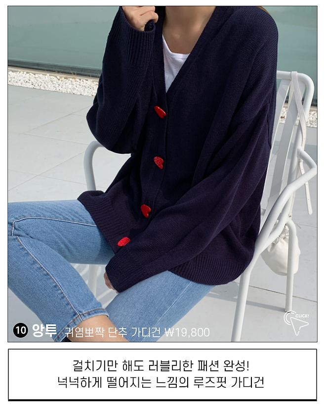 넉넉하게 떨어지는 느낌의 루즈핏 가디건