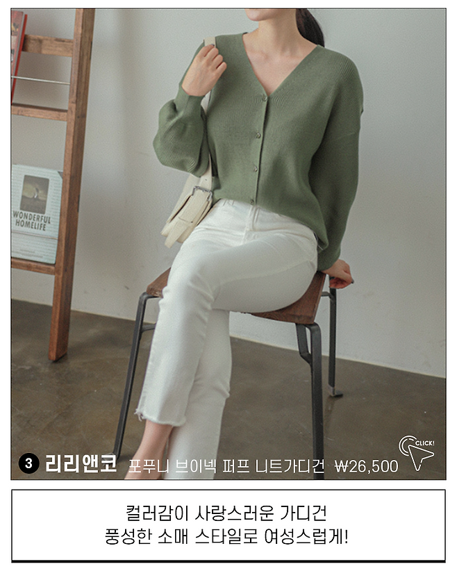 3. 리리앤코 포푸니 브이넥 퍼프 니트 가디건 ₩26,500