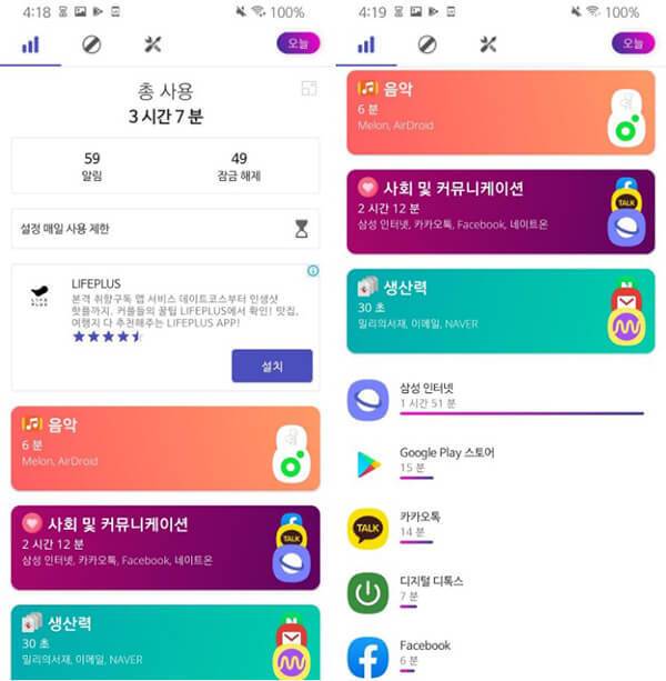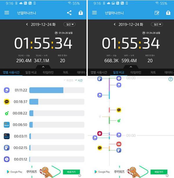 > 앱별 사용 시간을 매우 상세히 볼 수 있다