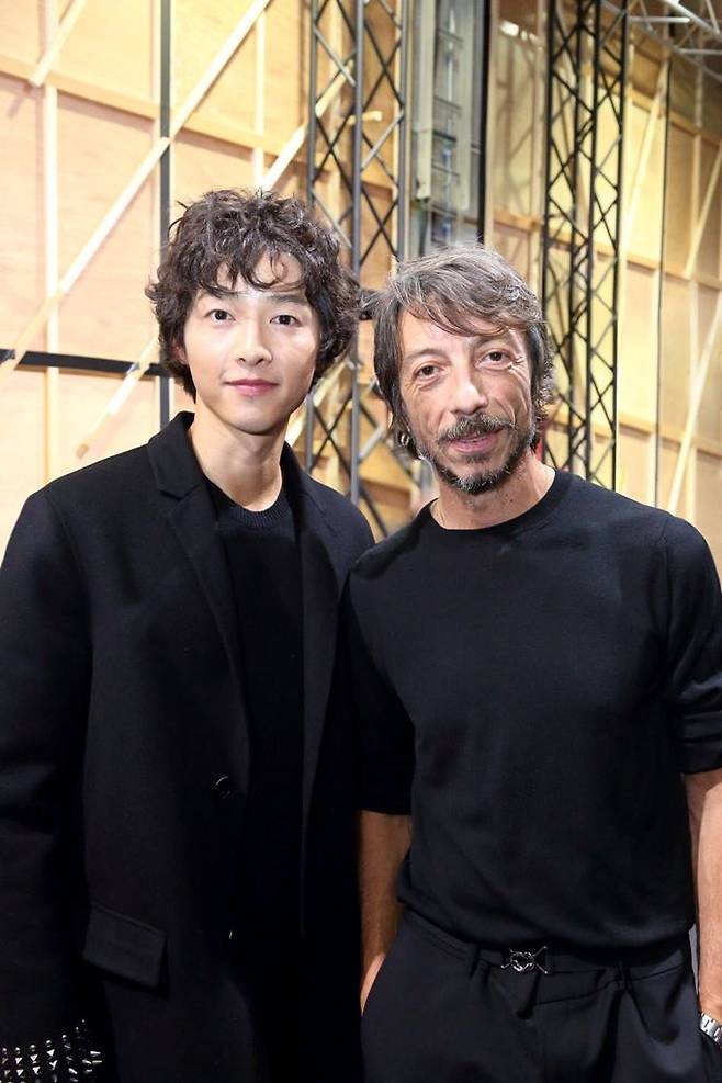 이날 송중기는 ‘아리스토-펑크’ 무드의 블랙 코트룩으로 한류스타의 독보적인 존재감을 발휘했다.