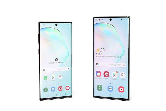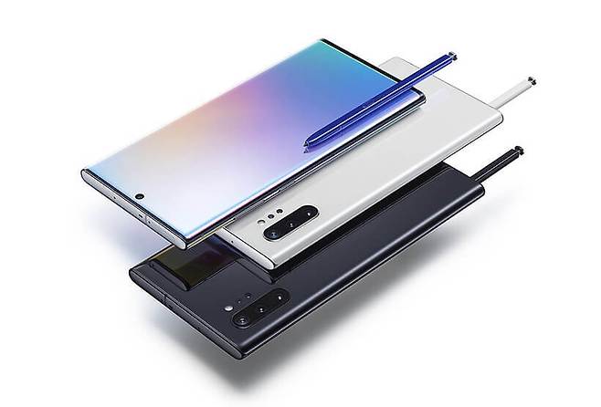 10이라는 기념비적인 숫자를 사용했지만 아홉 번째 노트인 갤럭시 노트10은 지난해 8월 공개되었다. 갤럭시 노트10은 외형적으로나 정책적으로나 이전과 크게 달라졌다. 우선 좌우에 이어 상하 베젤까지 완전히 사라졌으며, 전면 카메라는 화면 위에 구멍을 내서 위치시킨 인피니티-O 디스플레이, 일명 펀치홀 카메라를 탑재했다. 가장 큰 변화는 단일 모델이 아닌 두 가지 크기로 출시되었다는 점이다.