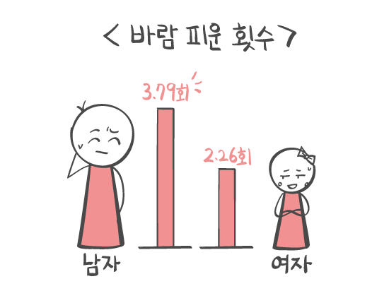 바람 피우는 횟수가 더 많았어요.