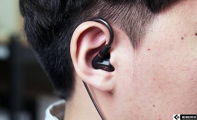 젠하이저 IE300은 이런 류의 이어폰 중에선 착용감이 좋은 편이다. MMCX 단자의 장점인 회전에 대한 자유로움 덕분에 케이블의 이어가이드 부분을 귀에 걸고 유닛을 귀에 밀어 넣는 것이 어렵지 않다.