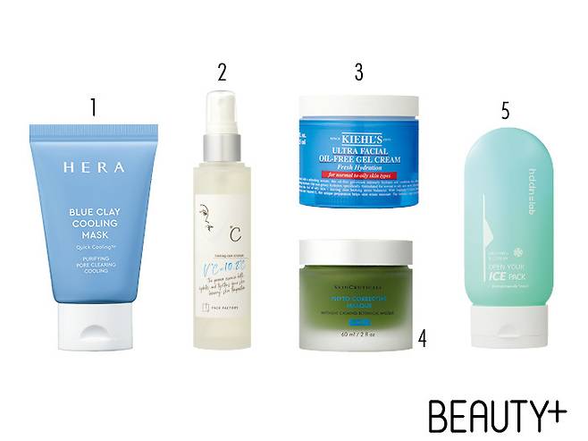1 헤라 블루 클레이 쿨링 마스크 크림을 피부에 도포하는 순간 일시적으로 모공을 수축하고 불필요한 피지를 세정해 보다 깨끗한 피부로 가꿔준다. 50ml 3만2000원.