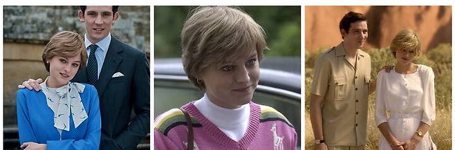 지금까지 회자될 정도의 다이애나 비 특유의 아이코닉한 스타일이 극 전체에 넘친다. <더 크라운 시즌 4>의 의상을 전담한 코스튬 디자이너 에이미 로버츠는 다이애나 스펜서의 우아하면서도 사랑스러운 의상들을 통해 리얼한 그녀의 모습을 보여주고자 했다. 실루엣에 변형을 주는 대신 컬러나 시그너처인 패턴으로 포인트를 주었고 액세서리와 주얼리까지 섬세하게 제작해 놀라운 싱크로율을 완성했다.