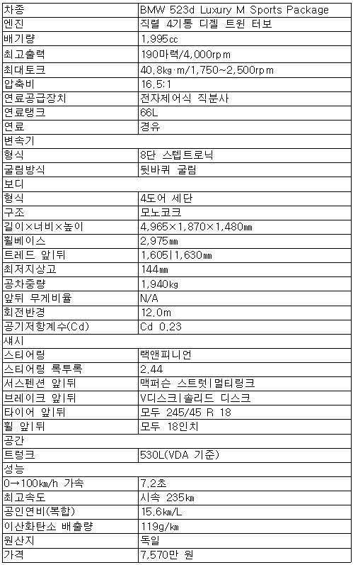 523d M 패키지는 5시리즈를 알고 있던 사람들에게는 새삼스러운 매력과 기분 좋은 반전을, 5시리즈를 잘 모르는 사람들에게는 매끈하고 편한 운전감을 느끼게 해준다. 생각보다 큰 변화를 보닛 아래에 심어놓았지만, 그걸 눈에 띄게 펼쳐 보이지도 않는다.