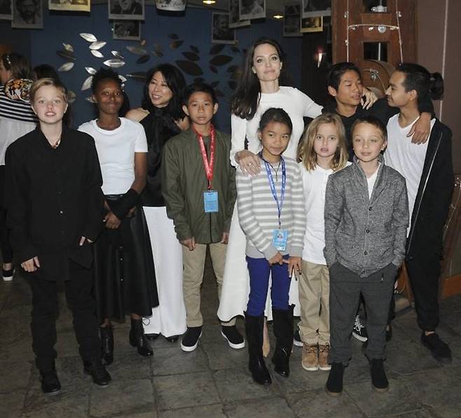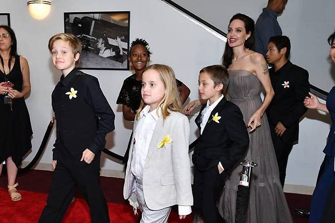 10. 안젤리나 졸리는 2017년 9월 출연진과 6명의 자녀와 함께 영화 '그들이 내 아버지를 죽였다' 시사회에 참석했다.