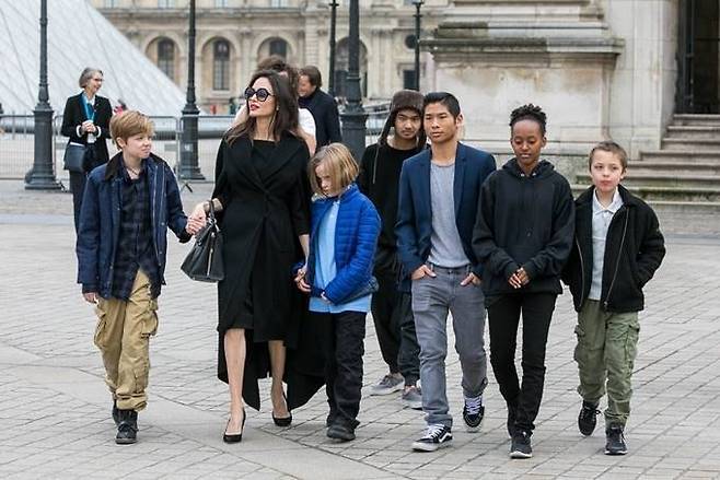 17. 2018년 1월 안젤리나 졸리는 6명의 자녀들을 파리 루브르 박물관으로 데려갔다.