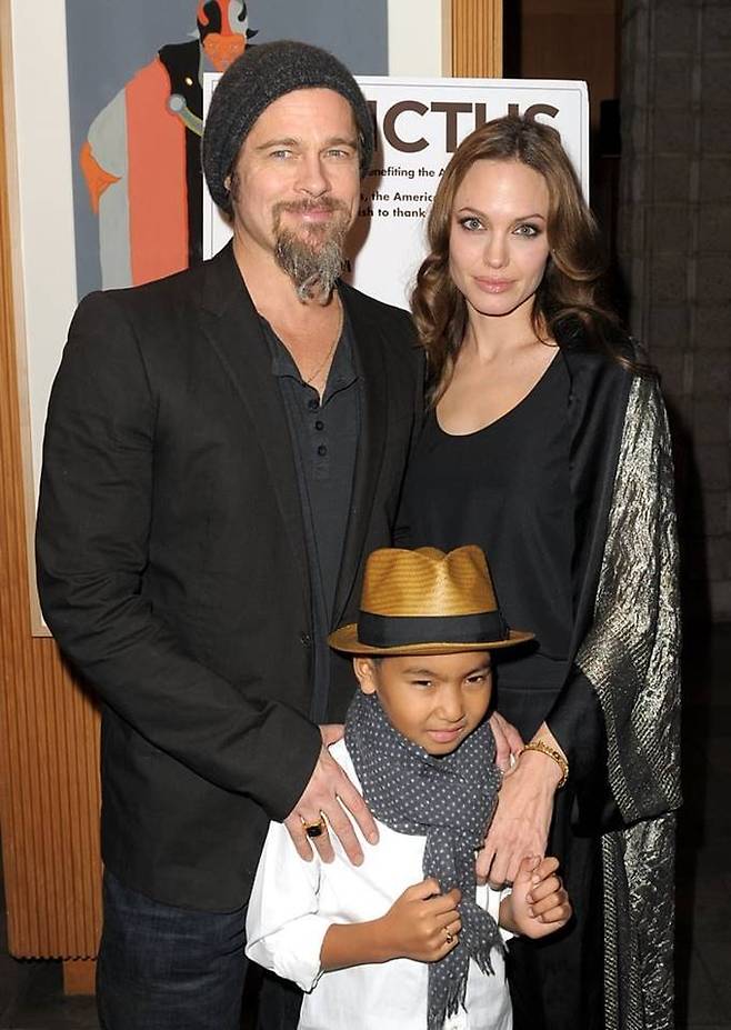 5. 안젤리나 졸리와 브래드 피트 부부는 2009년 영화 '인빅터스' LA 시사회에 매덕스와 함께 참석했다.