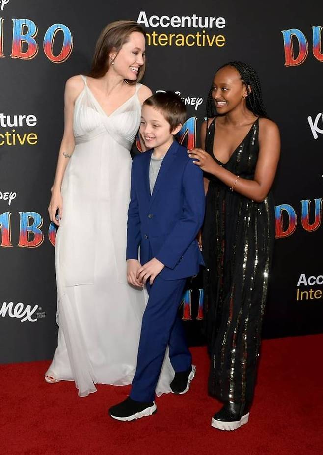 21. 2019년 3월 안젤리나 졸리는 디즈니 실사 영화 '덤보' 시사회에 딸 샤일로와 자하라와 함께 참석했다.