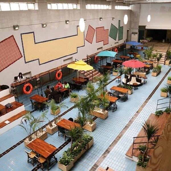 벽돌과 커다란 유리창으로 이루어진 모던한 인테리어의 건물은 유럽의 거리를 떠오르게 만든다. 거친 느낌의 시멘트벽이 빈티지한 엽서와 포스터로 장식돼 있어 멋스러운 1~3층을 지나면 돌벽으로 둘러싸인 4층의 루프탑이 나온다. 카페 곳곳에 흙으로 만든 화분이 놓여 있는데 따로 판매도 하고 있다고 한다. 달달한 코코넛밀크 커피와 몽블랑 등의 간단한 베이커리 종류들도 맛있으며 1인당 각 한 개의 음료를 주문하면 2,000원에 아메리카노를 다시 리필해준다.