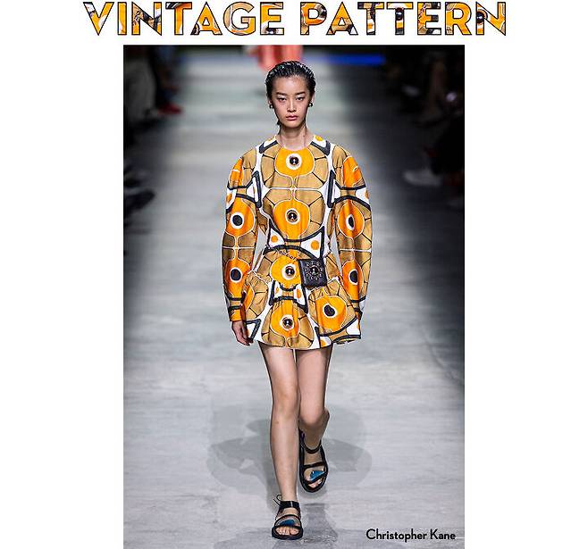 2020 S/S 시즌 트렌드로 떠오른 빈티지 패턴. 그 중에서도 6~70년대 벽지에서 영감을 받은 패턴이 많이 등장했다. 레트로 감성을 느낄 수 있는 대담한 사이즈의 화려하고 선명한 색감이 특징이다. 이를 가장 간편하고 효과적으로 활용할 수 있는 아이템은 드레스다. 볼드한 패턴인 만큼 맥시 기장 보다는 미니 드레스를 선택하면 스타일링이 쉽다. 백 또한 과감한 패턴과 충돌하지 않도록 심플한 라인의 기본 아이템을 매치할 것. 이에 70년대 무드를 한 방울 더 가미하고 싶다면, 그 시절 유행한 플랫폼 슈즈를 선택해도 좋다.